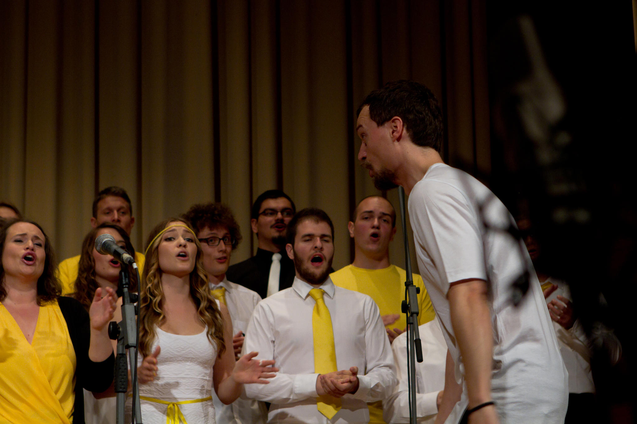 Fotografije s 7. letnega koncerta zbora Bee Geesus z gostom Otom Pestnerjem 25. maja v veliki dvorani Grand hotela Union.